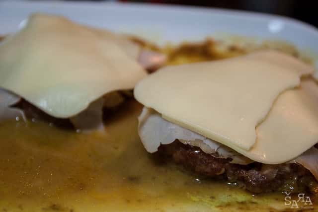 Levar ao forno pré aquecido a 180º até os hamburgers ficarem quase prontos.