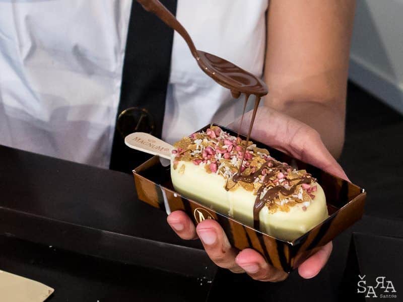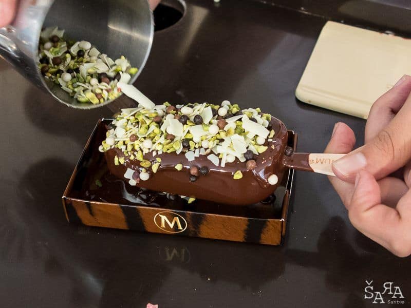 O novo espaço Magnum Lisboa permite personalizar um Magnum em mais de 200 combinações possíveis entre amêndoas caramelizadas com canela, pérolas de chocolate, crocante de amora, pistácio, morango desidratado, merengue, pétalas de rosa cristalizadas! Este foi o meu :) mas parece que tenho que experimentar mais uma ou outra combinação